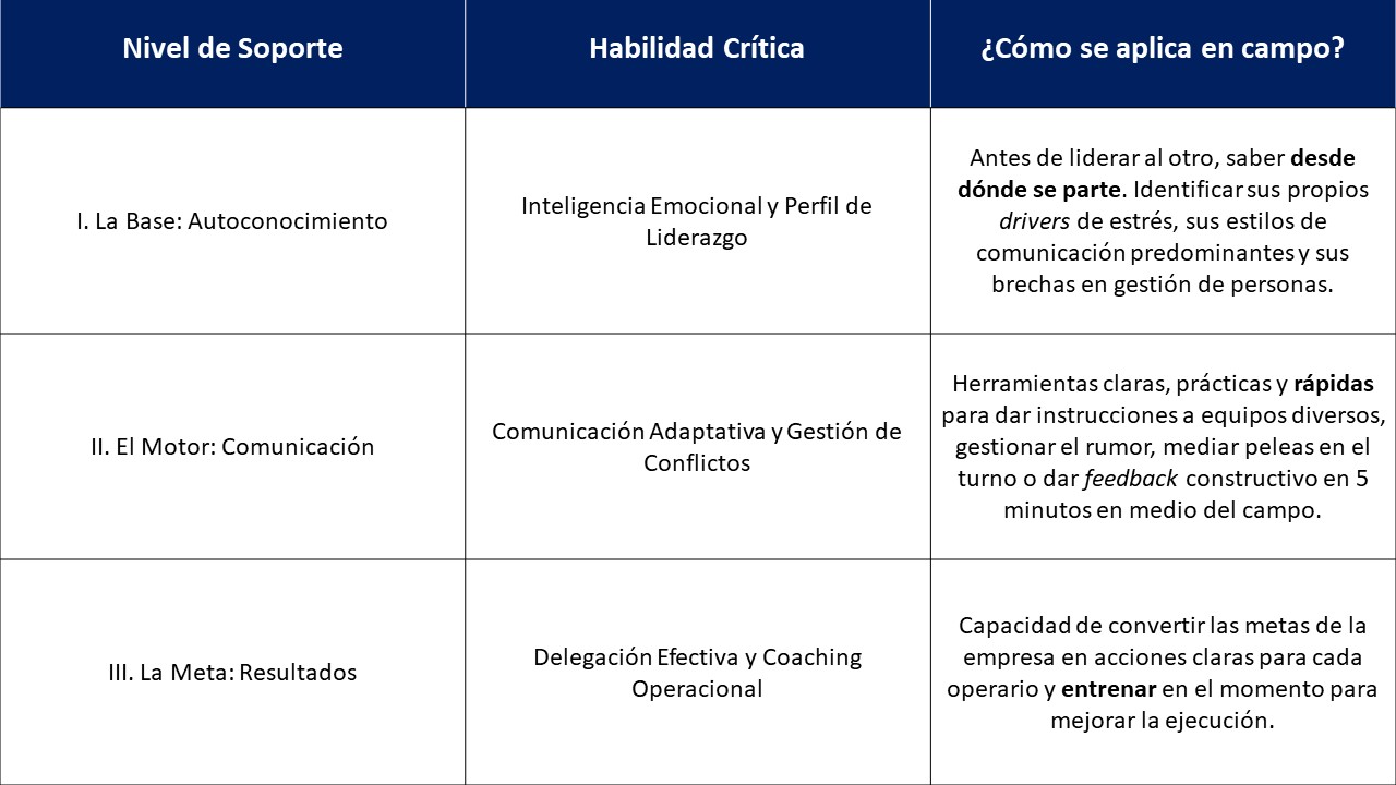 El éxito de la operación no solo depende del dominio técnico, que se da por sentado, sino de la capacidad para influir y alinear equipos complejos. Este liderazgo requiere un enfoque estructurado en tres niveles:
